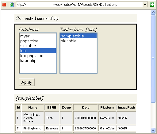 Beyond WYSIWYG TurboPhp supports dynamic data presentation that is beyond WYSIWYG. As panels or data blocks are generated at runtime, layouts expand, keeping your design intact. The layout approach uses HTML tables and CSS styles to achieve a wide range of browser compatibility without complex scripting. |